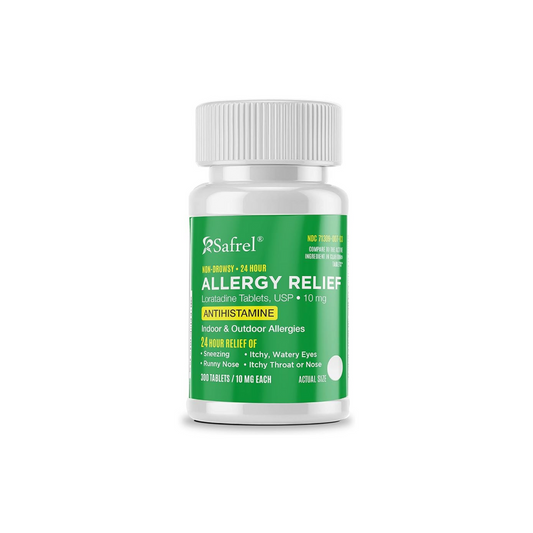 Safrel Loratadine 10mg 100 Tablets | Non-Drowsy 24 Hour Allergy Relief Medicine | Antihistamine Support for Runny Nose, Sneezing, Itchy, Watery Eyes | Compare to Claritin Tablets Prescription Strength