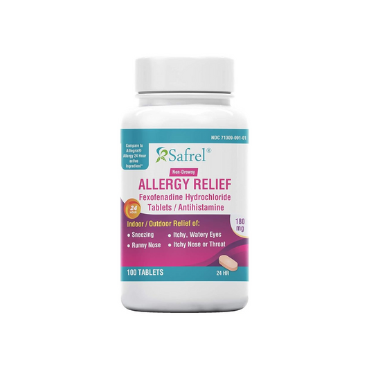 Safrel 24 Hour Allergy Relief Medicine (100-Count) | Fexofenadine HCl 180 mg Tablets |Non-Drowsy Antihistamine | For Hay Fever, Itchy Eyes, Nose, Throat |Children and Adults | Compare to Allegra Pills