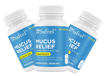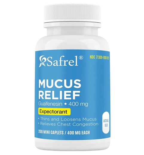 Fast relief from chest congestion and cough with Safrel’s 400 mg Guaifenesin tablets. Compare to Mucinex for effective mucus thinning.