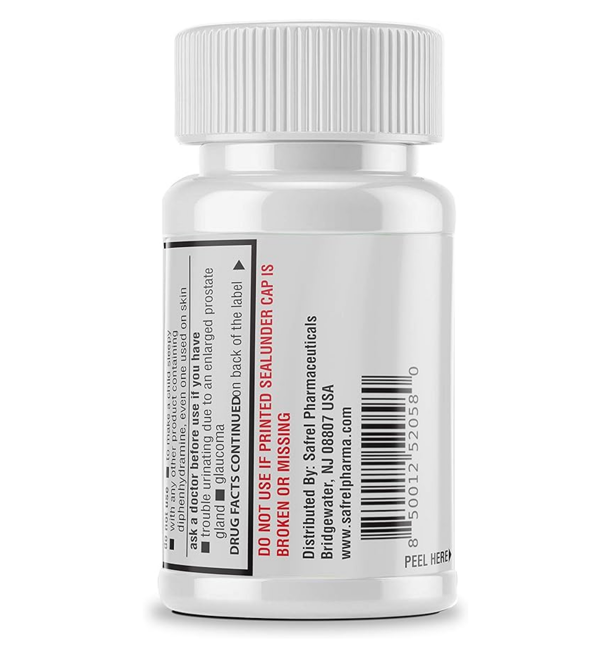 Safrel Allergy Relief Medicine | Antihistamine Diphenhydramine HCl 25 mg (100 Tablets) | Children and Adults | Relieves Sneezing, Runny Nose, Hay Fever Symptoms, Itchy Eyes and Throat | Value Pack