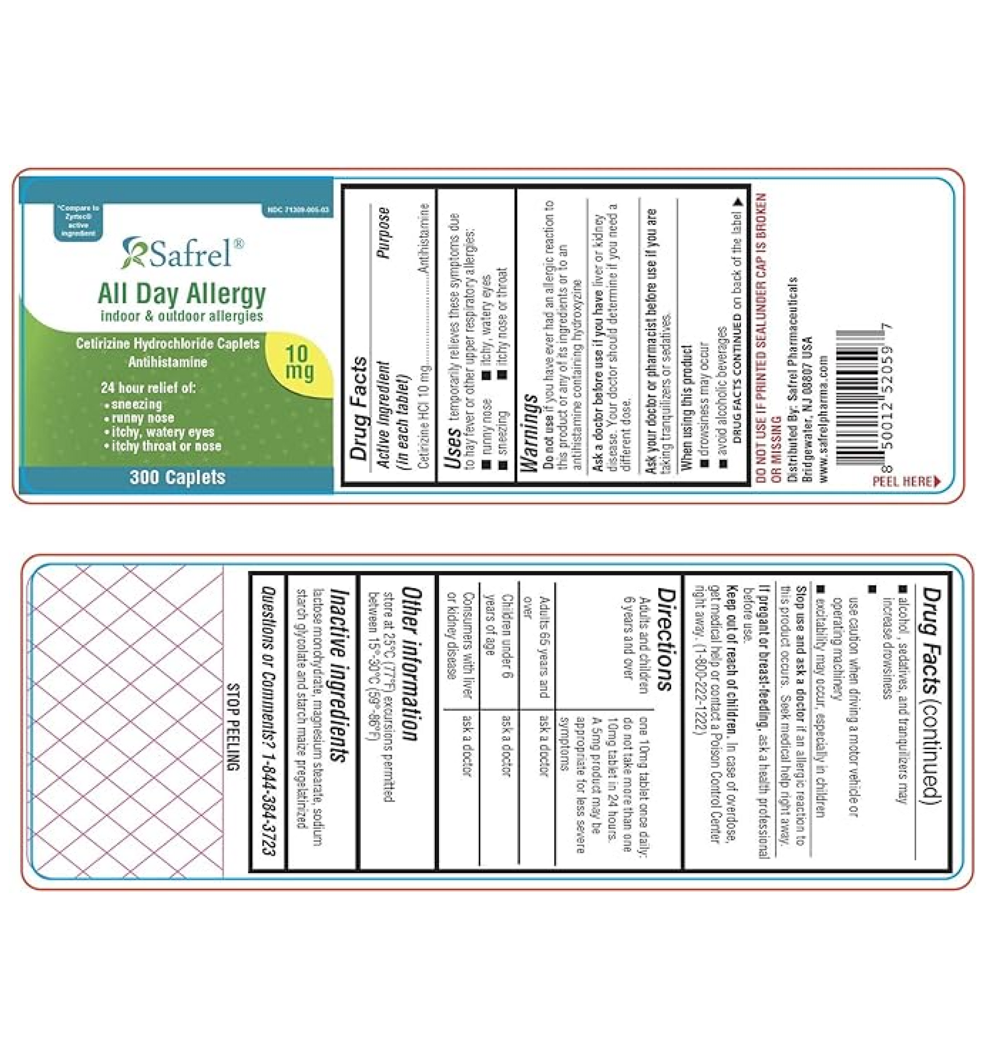 Safrel Cetirizine HCl 10 mg 300 Tablets | Fast & Reliable Allergy Relief Medication | 24 Hour Antihistamine Care for Pollen, Hay Fever, Dry, Itchy Eyes. Sneezing & Runny Nose | Generic Zyrtec